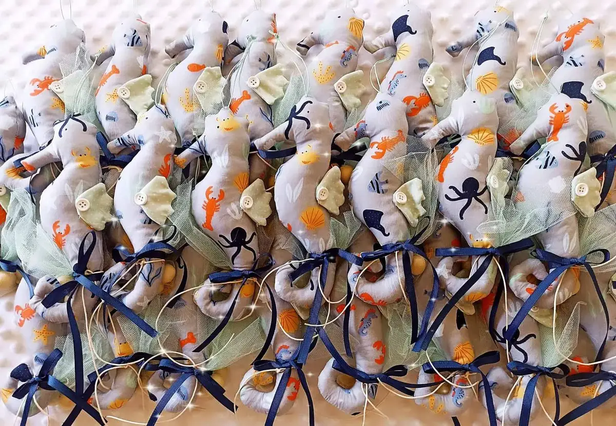 Μπομπονιέρα βάπτισης ιππόκαμπος υφασμάτινος ποσότητα